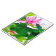 Modern floral, modern watercolour art from original painting by artist Sacha Grossel. This beautiful pink waterlily amongst dark green and lime green foliage shows an abstract depiction of the waterlily's reflection.