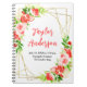 This fun and whimsical notebook features watercolor watermelon, pomegranate, strawberries, cherries and foliage on a gold geometric frame. The text combines handwritten script and serif fonts for a stylish and modern look. It can be personalised with your baby's birth stats, such as name, size, date and time of birth, or if you would like to give it as a shower gift you are able to edit and remove text.