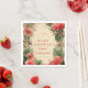 This baby shower design showcases a lush vintage garden illustration with ripe watermelon accents, soft florals, and leafy greenery on a warm parchment background. The composition feels fresh yet nostalgic, blending old-world botanical charm with a playful summer fruit theme.