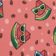 Watermelon slice with sunglasses. Seamless pattern. Custom background colour.
