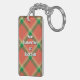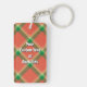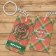 Watermelon crest badge surrounded by a strap and buckle over tartan background. Custom text on both sides.