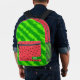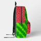 This pretty watermelon backpack has a melon fruit design that looks like it's been sliced, so the juicy pink-red flesh of the melon shows through on the pocket and along the top, complete with black watermelon seeds. The front and sides include the speckled green, mottled rind. This is a cute, whimsical summertime design with all original artwork. Use the easy template to add your monogram to the front pocket. Find more fun backpacks and other custom products in the FancyCelebration store: https://www.zazzle.com/store/fancycelebration