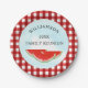 Add these cheerful paper plates to your table decor. They are decorated with watercolor watermelons and a blue sky on a red and white buffalo check background.