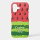 Red and green watermelon flag with stripes and seeds. Custom text.