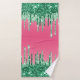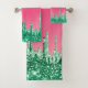Watermelon Green and Pink Glitter Dripping Luxury Bath Towel Set