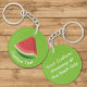 Ripe red watermelon slice icon. Custom background colour. Custom text on both sides.