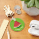 Ripe red watermelon slice icon. Custom background colour. Custom text on both sides.