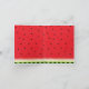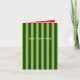 A custom note card with green stripes on the outside and bright red watermelon with seeds on the inside.