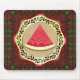 watermelon on olive plate with Palestinian tatreez Mouse Mat
