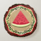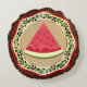 watermelon on olive plate with Palestinian tatreez Round Cushion