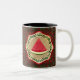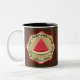 watermelon on olive plate with Palestinian tatreez Two-Tone Coffee Mug