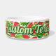 I absolutely love this product! I was a little concerned prior to buying it, but I was blown away by the quality of the item. The bowl is sturdy and arrived clean without any damage. The printing was crisp and clean and looks Better than I hoped! My dogs immediately knew these were for them and get very excited to pose with their new bowls! Definitely recommend and will purchase more in the future! The printing is crisp and well done. It looks absolutely beautiful on the bowl, and I can tell that it’s going to hold up well over time.