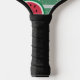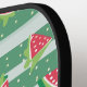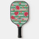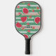 This pickleball paddle design features a watermelon related pattern with green and pink stripes emphasising the joy and energy of summer season.