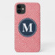Watermelon Pink Greek Key Pattern Navy Monogram Case-Mate iPhone Case