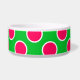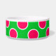 Watermelon-pink polka dots are on a watermelon-green background and have a fun, summer feel.