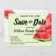 Our watercolor watermelon looks almost good enough to eat! Fun, save the date postcard for your upcoming summer family reunion, party, picnic or BBQ.