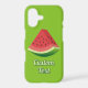 Ripe red watermelon slice. Custom background colour. Custom text.