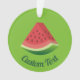 Ripe red watermelon slice. Custom background colour. Custom text on both sides.