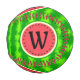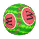 This pretty watermelon monogram baseball design has a round fruit that looks like it's been sliced, so the juicy pink-red flesh of the melon shows through, along with a circle of black watermelon seeds. The berry also has a speckled green, mottled rind pattern.