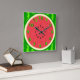 This pretty watermelon square wall clock has a round fruit design that looks like it's been sliced, so the juicy pink-red flesh shows. In the middle, twelve black watermelon seeds mark the time and correspond with the twelve green clock numbers, made to look like they are carved in the berry's mottled rind. The background has a green speckled rind look. This is a cute clock for summertime or to match your whimsical decor.