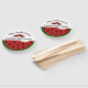 Cute, tropical, ripe red watermelon slices with a bite taken on white background. Large slice at bottom, and two small slices between text. Family name template at top, and "Family Reunion" text above large slice of watermelon. Design is on front and back.