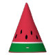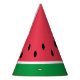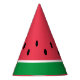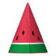 Watermelon summer fruit theme paper cone party hat. Simple ripe red watermelon fruit with green rind and black seeds.