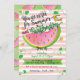 Summer fun and watermelon! Pretty and colourful summer party invitation. Features a juicy watermelon slice with a bite with vines and seeds. Faux gold foil accents. Great for a summmer pool party, bbq, graduation, or birthday celebration.