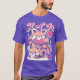 I give wanted to give this a 4 instead of a 5 because these Basic DARK T0shirts run unexpectedly SLIM or Narrow. Which is great if you do not have a potbelly, but I have a paunch. It isn't the shirt's fault that I've got a beer belly. The design and shirt itself is a quality cotton shirt. The color is more of a deep purple, but still a very pretty color. The Basic DARK T-shirts run a bit SLIMMER than the Basic Ts. The neck is a fraction narrower (or seems to be narrower) also. I'm a paunchy middle-aged woman and my neck is 12 inches (31cm) thick and the neckline fell about the same as in the photo of the man, and I had the desire to tug it a bit. So if you're a thick necked man or like loose shirts, be aware these are slimmer shirts. Once I get rid of my lockdown paunch it'll look great. The shirt washed well in cold water with no apparent bleeding. We don't have a dryer, so it hung dry. Did not shrink. Love the colors and the design. The design looks smaller on my shirt than it does on the model on-line. But still, it looks good on the shirt. The printing looks as it does on the model, just the size seems fractionally smaller. Washed garment in cold water, hung dry and design appeared unaffected.