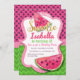 Celebrate a sweet Birthday with this adorable watermelon watercolor invitation! Features colourful pink watermelon slices accented with a light pink frame. A yummy pink and purple polka dot and green chevron pattern make up a cute background. Perfect for a summertime birthday!