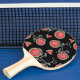 Overall, it's a nice product but for what you pay the quality isn't very good. The way it's glued together, as you can see in the pictures, is messy, the glue is visible and shiny, there's some ink staining that looks like black fluff but isn't, it won't come off. On the paddle's black surface there are also little white marks here and there. It's not too easy to show in the pictures because of the flash but I tried to showcase the little white blemishes that ruin a smooth black surface. This was meant to be a gift and it just looks sloppily put together unfortunately. A few imperfections that mar what could have been really great. The printing was neat.