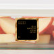a waterproof luxury beauty label with a black background and metallic gold woven border