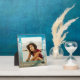 Standing photo frame gift to personalise with name and date. Any nature lover would appreciate the blue sky and water image that makes up the photo border. Upload a photo of either orientation where the subject is centred. The photo is framed by a thin, bright blue line. Hand-printed font style at the bottom for text to include a short message, name, and / or date. Made with boyfriend / girlfriend gift giving in mind and works for anyone.