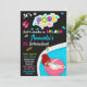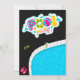 Summer water fun theme birthday invitation with a girl floating on inflatable ring in the pool.