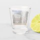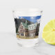 Shot glass that features a scenic photo image of the beautiful, chalet style Prince of Wales Hotel, located in Waterton Lakes National Park, Alberta, Canada. A great barware and travel souvenir gift idea!