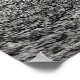A black and white illustration of water flowing from the top of a basalt basin and into a forest filled of trees.