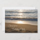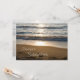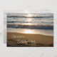 Birthday party invitation card featuring a beautiful photo of the waves crashing on the beach at sunset. Customisable with your party details.