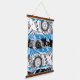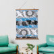 The Wave Mechanism – Custom Wood Topped Wall Tapestry transforms abstract art into immersive interior design. Symmetrical circular motifs evoke gears in motion, while the bold blue wave band flows across the center, balancing structure with fluidity.