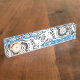 The Wave Mechanism – Desk Nameplate with Clock transforms abstract art into a functional office accessory. Symmetrical circular motifs evoke gears in motion, while the bold blue wave band flows across the center, balancing structure with fluidity.