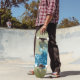 This skateboard has a blue wave violently crashing in the sea. The background is a grunge fog of grey. This is custom artwork which is personalizable.