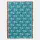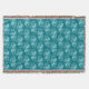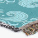 Attractive ocean themed throw blanket features abstract watercolor wave swirls on teal background