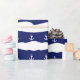 This cute custom blue and white gift wrap has a pattern of waves of dark or navy blue ocean, and white anchors.