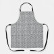 This apron has an Art Deco design of black curved lines in a triangle shape on a field of white repeated across the design.
