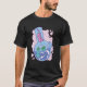 I give wanted to give this a 4 instead of a 5 because these Basic DARK T0shirts run unexpectedly SLIM or Narrow. Which is great if you do not have a potbelly, but I have a paunch. It isn't the shirt's fault that I've got a beer belly. The design and shirt itself is a quality cotton shirt. The color is more of a deep purple, but still a very pretty color. The Basic DARK T-shirts run a bit SLIMMER than the Basic Ts. The neck is a fraction narrower (or seems to be narrower) also. I'm a paunchy middle-aged woman and my neck is 12 inches (31cm) thick and the neckline fell about the same as in the photo of the man, and I had the desire to tug it a bit. So if you're a thick necked man or like loose shirts, be aware these are slimmer shirts. Once I get rid of my lockdown paunch it'll look great. The shirt washed well in cold water with no apparent bleeding. We don't have a dryer, so it hung dry. Did not shrink. Love the colors and the design. The design looks smaller on my shirt than it does on the model on-line. But still, it looks good on the shirt. The printing looks as it does on the model, just the size seems fractionally smaller. Washed garment in cold water, hung dry and design appeared unaffected.