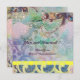 Elegant ,vibrant and artistic floral design in sparkling oriental swirls ,blue,pink,yellow,green,purple colours and gold sparkles .Watercolor painting with golden and silver foil.