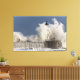 Waves Crashing Up Against A Lighthouse Canvas Print