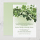 A lovely arrangement of green ribbons and waves of multi-coloured shamrocks against a white backdrop. A seasonal invitation for any celebration. The card is easy to customise with your wording, font, font colour and choice of six paper types.