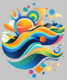This dynamic artwork uses bold geometric figures and fluid lines to express the river's journey. The bright sun, colourful waves, and distant mountains are in harmony, symbolising the balance between the elements of nature. The vibrant colour palette evokes an ever-changing rhythm of life, adding energy and movement. The abstract form enhances the feeling of continuous flow and depicts the interconnectivity of all objects.