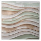 A hand-drawn illustration of calm waves with white, beige, and light mint waves. The metallic colours are clean with brush strokes in the background. The visible texture and the lines are slightly wavy.