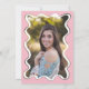 Wavy retro Nurse Graduation invitation card. Fancy invitation in pink and red.