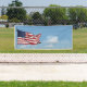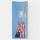 waving American Flag and sky blank Banner